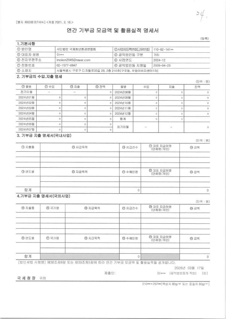 (사)국제청년환경연합회의 2024년기부금 모집 현황을 첨부 파일로 공지합니다.